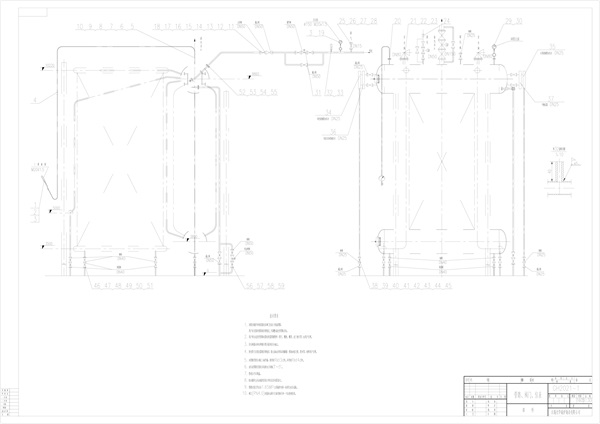 余熱鍋爐由鍋筒、活動煙罩、爐口段煙道、斜1段煙道、斜2段煙道、末1段煙道、末2段煙道、加料管(下料溜)槽、氧槍口、氮封裝置及氮封塞、人孔、微差壓取壓裝置、煙道的支座和吊架等組成。 余熱鍋爐共分為六個循環(huán)回路,每個循環(huán)回路由下降管和上升管組成,各段煙道給水從鍋筒通過下降管引入到各個煙道的下集箱后進入各受熱面,水通過受熱面后產生蒸汽進入進口集箱,再由上升管引入鍋筒。 各個煙道之間均用法蘭連接。